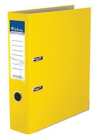 Pákový pořadač "Basic", žlutý, 75mm, A4, s ochranným spodním kováním, PP/karton, VICTORIA