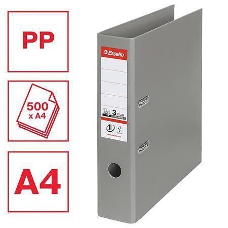 Pákový pořadač "Standard", ochranné spodní kování, šedá, 75 mm, A4, PP, ESSELTE
