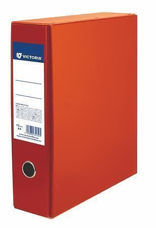 Pákový pořadač s obalem, oranžový, 75 mm, A4, karton, VICTORIA