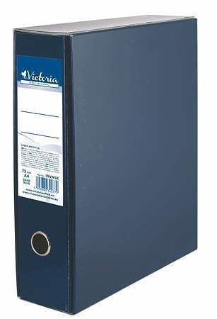 Pákový pořadač s obalem, tmavě modrý, 75 mm, A4, karton, VICTORIA