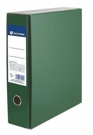 Pákový pořadač s obalem, tmavě zelený, 75 mm, A4, karton, VICTORIA