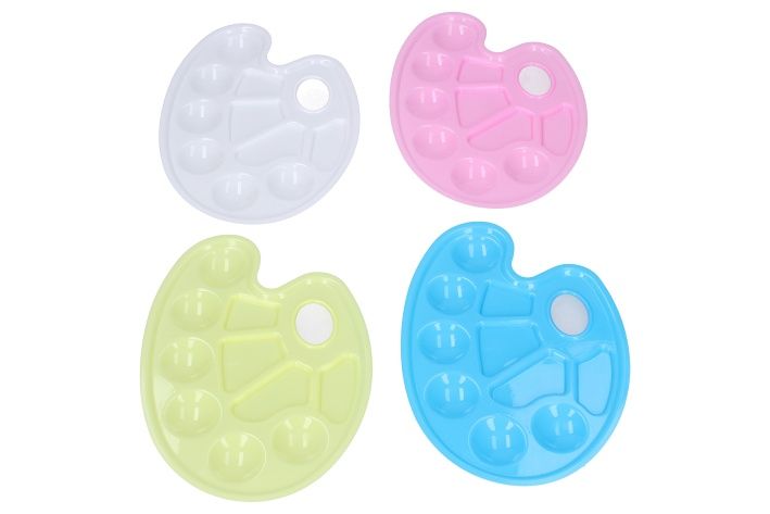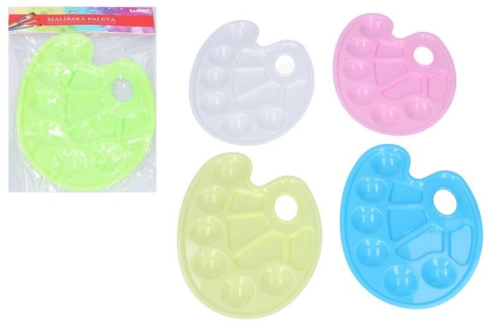 Lehká plastová malířská paleta. Používá se na malování s tuhými barvami jako je tempera.