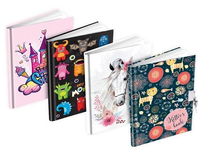 Dívčí památník s různými dětskými motivy - Památník je se zámkem a dvěma klíčky, takže si v něm uchováte každé tajemství. Nechte každou kamarádku, aby Vám ozdobila stránku v památníčku a podepsala se. Do památníku můžete kreslit, psát, nalepovat fotky. S tímto památníkem budete mít vždy všechny kamarády u sebe. Památník obsahuje 60 bílých listů. MOTIVY: - zámek pro princezny - příšerky - kůň - kočky Uvedená cena je za 1 ks.