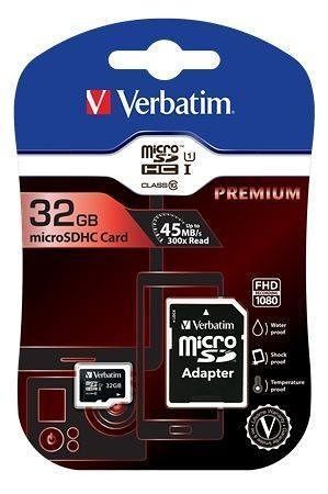 Paměťová karta "Premium", microSDHC, 32GB, CL10/U1, 45/10 MB/s, adaptér, VERBATIM