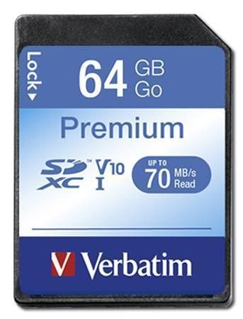 Paměťová karta "Premium", SDXC, 64GB, CL10/U1, 45/10 MB/s, VERBATIM