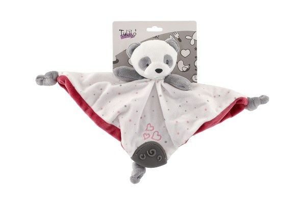 Panda medvěd usínáček kousátko chrastítko plyš 25x25cm na kartě v sáčku 0+