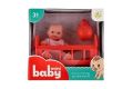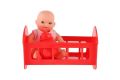 Panenka 10cm pevné tělo plast s postýlkou s lahvičkou v krabičce 16x15x10cm