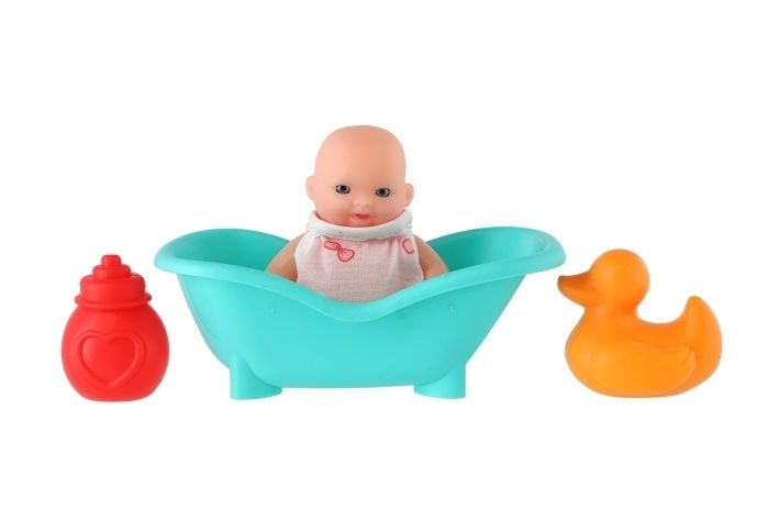 Panenka 10cm pevné tělo plast s vaničkou s doplňky v krabičce 16x15x10cm