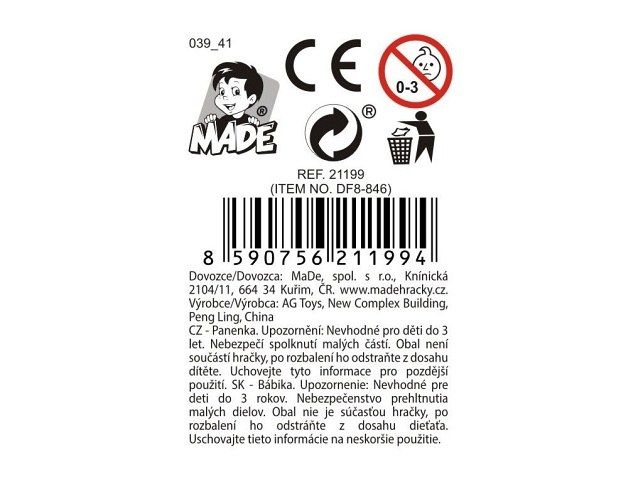 Rozměr hračky je 11 x 6,5 x 19 cm.