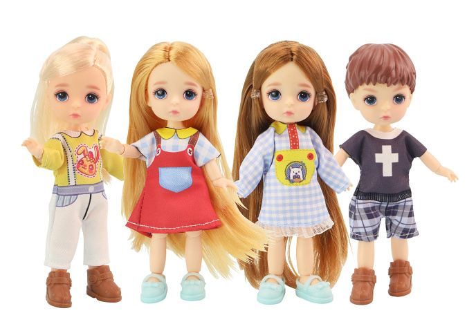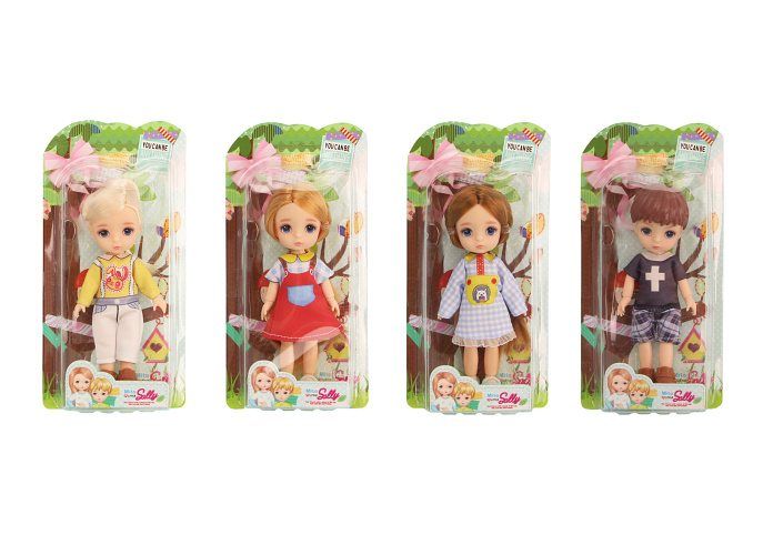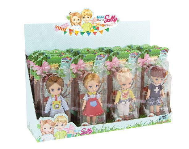 Panenka. Velikost 12,5 cm. Pohyblivé klouby. Display box 12 ks. 4 varianty - žluté, červené, modré, černé.