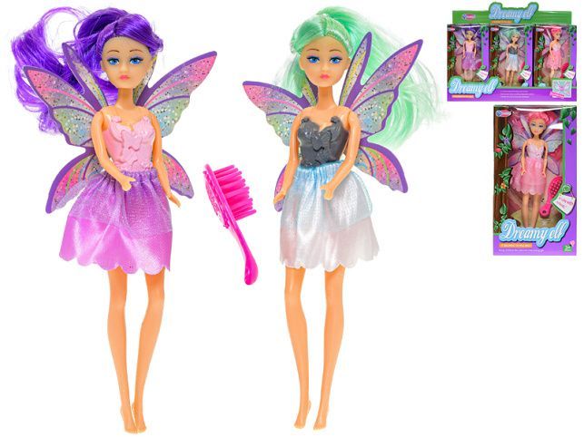 Panenka 18cm víla s křídly 3barvy v krabičce