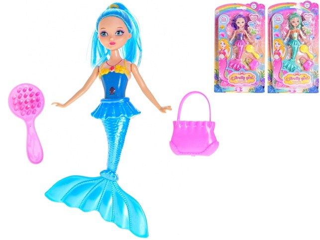 Panenka 20cm mořská panna s doplňky 3barvy na kartě