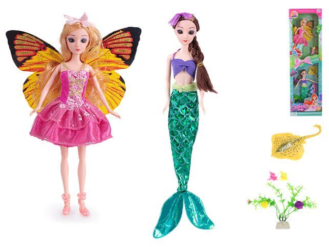 Panenka 29cm víla a mořská panna s doplňky v krabičce