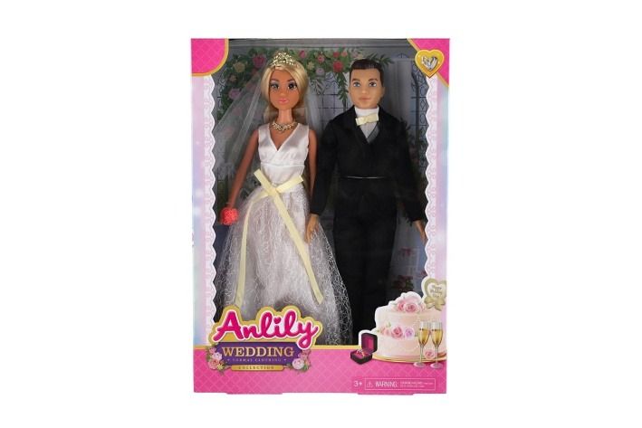 Panenka Anlily 2ks nevěsta a ženich plast 30cm v krabici 23x32x5cm