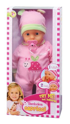Krásná měkká panenka Bambolina Capricici. Když ji vezmeš její dudlík