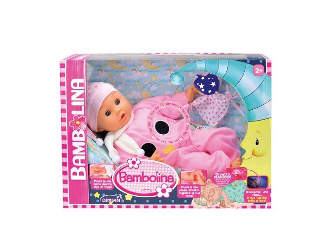 Krásná panenka Bambolina Jasmine umí až 50 českých slov. Jasmínka po stisknutí bříška začne povídat. Pojď si s ní hrát, poví ti například, mami mám tě ráda.