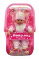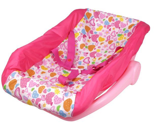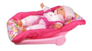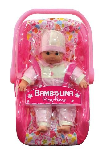 Panenka Bambolina s autosedačkou o velikosti 30 cm se vzory srdíček.