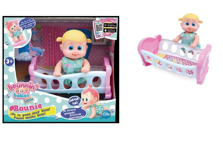 Miminko leze, vydává miminkovské zvuky, houpe se v kolébce. Provoz na 1×AAA baterii. Velikost miminka 16cm.