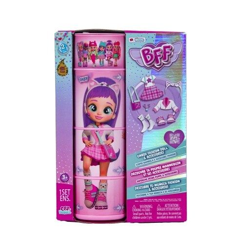 „Cry Babies BFF je sběratelská módní panenka, která ti umožní vyjádřit se, hrát si s módou a ztotožnit se svou oblíbenou postavou z animovaného seriálu Cry Babies Magic Tears. Panenka je vysoká 20 cm, má 15 cm dlouhé, hedvábné nylonové vlasy a spoustu módních doplňků. Tělo panenky má 6 ohebných kloubů pro polohování. Balení je pohyblivé, má otočné válce díky kterým můžeš vidět jak panenka zaujímá různé pózy. Uvnitř balení se nachází panenka a také 9 kusů příslušesntví: 2 kusy oblečení, kabelku, čepici, pár odpovídajíích bot s párem ponožek a náhrdelník!“