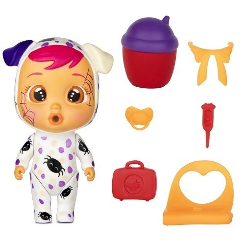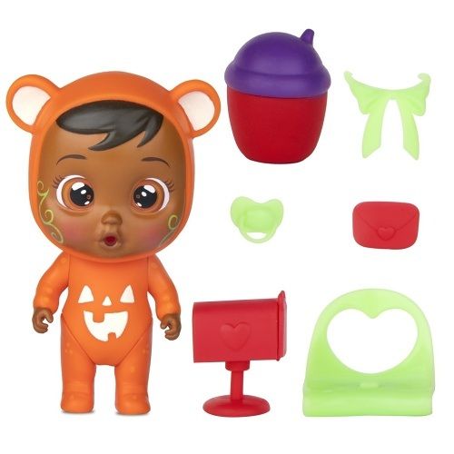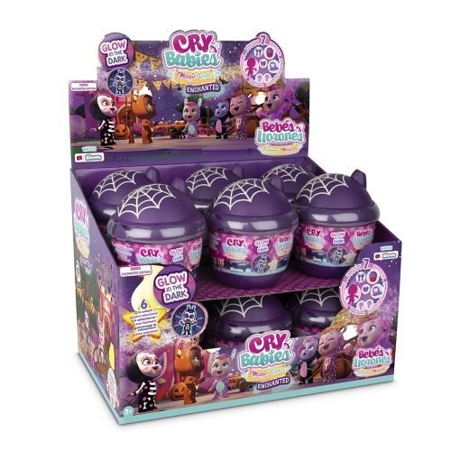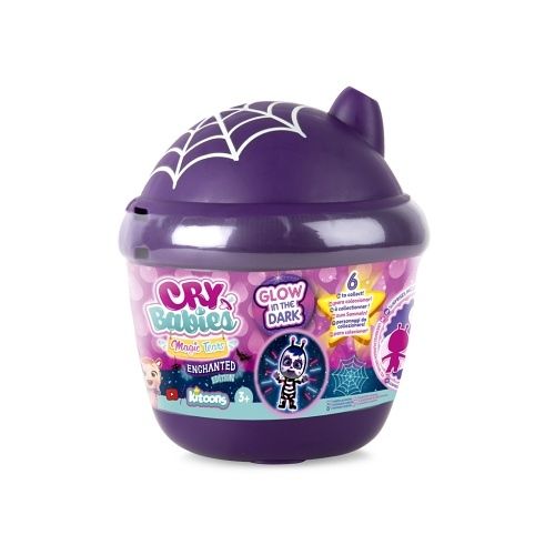 Vaše oblíbené postavy z Cry Babies Magic Tears, nyní v kouzelné edici! 6 panenek do sbírky, každá v unikátním oblečku – nejpůsobivější věcí je, že všechny září ve tmě! Každá z nich má svůj vlastní dům ve tvaru láhve, s pavučinovou kresbou nahoře, která také svítí ve tmě. Otevřete ho a zjistěte, kterou panenku máte a které doplňky má tentokrát panenka s sebou! Každá panenka je dodávána se 4 společnými doplňky: kouzelnou lahví,dudlíkem, brydnákem a židlí a 2 jedinečnými. Kromě toho některé domy obsahují příslušenství, které svítí ve tmě! Napojtete panenku Cry Babies Magic Tear lahví, stiskněte její břicho a bude plakat skutečné slzy!