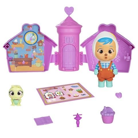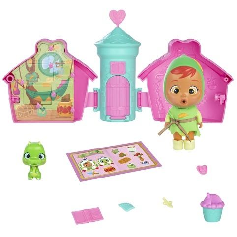 Objevte celý nový svět Cry Babies Magic Tears Storyland! Inspirováno ikonickými pohádkovými příběhy a můžete sbírat více než 6 jedinečných panenek! Každý domeček odpovídá osobnosti jednotlivých miminek, každá je dodávána s odpovídajícím mazlíčkem a zábavným doplňkem oblečení! Otevřete ji duhovým klíčem a objevte všech 10 obsažených překvapivých doplňků: kouzelnou kojeneckou láhev, dudlík, pár bot, kus oblečení, personalizovanou knihu, dva personalizované doplňky a arch se samolepkami. Některé kapsle navíc obsahují duhový doplněk, mašličku nebo dudlík! Nakrmte panenku kouzelnou lahvičkou, zmáčkněte jí bříško a bude plakat opravdové slzy! Jejich slzy jsou kouzelné; když jejich slzy spadnou na knihu, objeví se obrazék z příběhu! Domeček obsahuje: 1× panenka Cry Babies Magic Tears, 1× domácí mazlíček, 1 x dětská láhev, 1× dudlík, 1 pár bot, 1 kus oblečení, 1 personalizovaná kniha, 2× unikátní příslušenství, 1 list samolepek