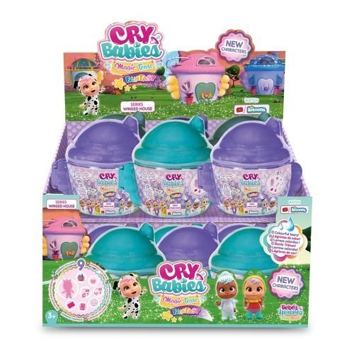 Mini panenky Cry Babies magic Tears – kouzelné slzy. 12 nových panenek ke sbírce. V balení najdete náhodnou panenku a doplňky, obal slouží i jako domeček. Panenka má v hlavě otvor, kterým nalejte do hlavičky vodu, můžete vodu také doplnit pomocí lahvičky a panenku napojit. Po stisknutí bříška panenka roní opravdové slzy. Po otevření domečku doplňky jsou skryté – otevřením jednotlivých boxiků zjistíte co tentokrát má panenka s sebou.