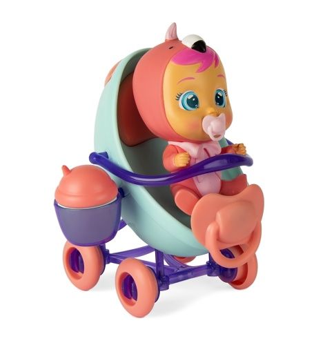 kočárek, lahvičku, dudlík a mašli. Panenka roní opravdové slzy, kočárek