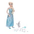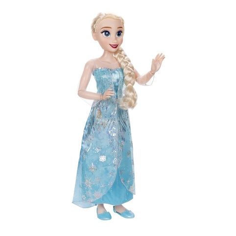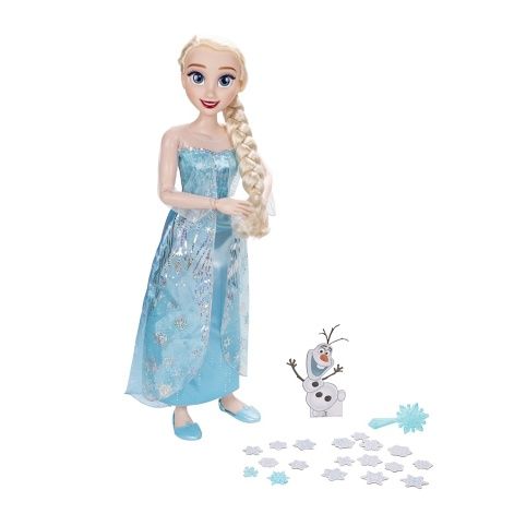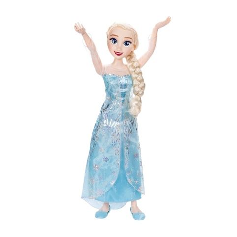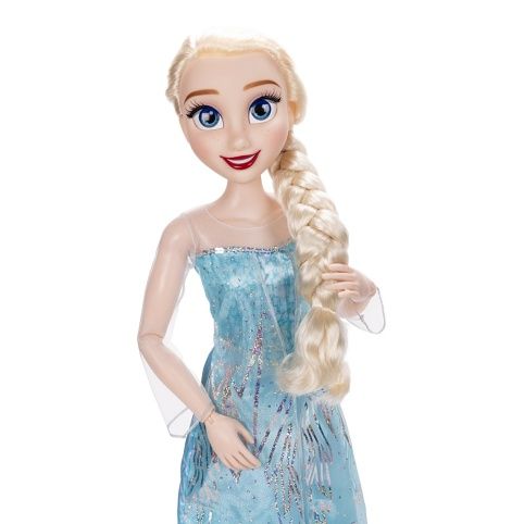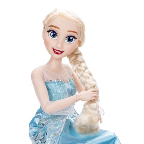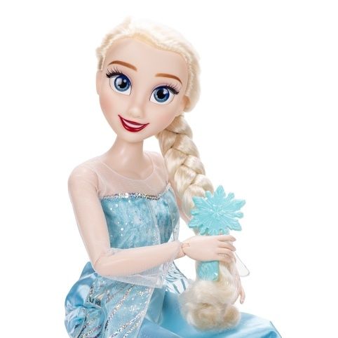 Panenka Disney Princezna Elsa 86 cm – panenka má krásné šaty a dlouhé spletené vlasy. Součástí jsou i dvě sponky do vlasů, dva hřebínky do vlasů, kartáč na vlasy, dvě sponky do vlasů, návod na různé účesy a vločkovou girlandu. Panenka je plně kloubová, takže je dokonale pohyblivá.