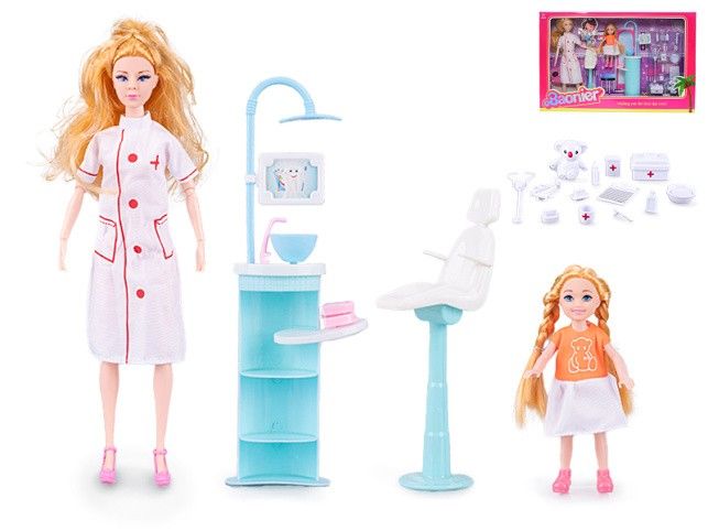 Panenka doktorka 29cm s pacientkou 14cm a doplňky v krabičce