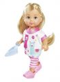 Panenka Evička v domácím oblečení s vysavačem 2v1 tyčový i ruční. Výška panenky 12 cm.