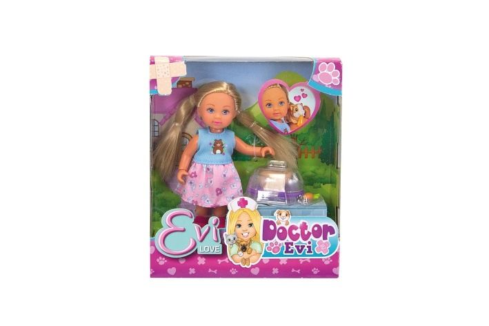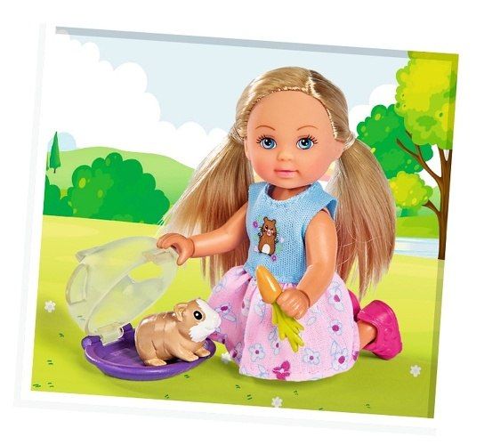 Panenka Evička Veterinářka s morčátkem a příslušenstvím. Velikost panenky 12 cm.