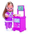 Panenka Evička jako veterinářka s brýlemi, 3 štěnátky a vyšetřovacím stolkem. Nezbytné příslušenství součástí. Výška panenky 12 cm.