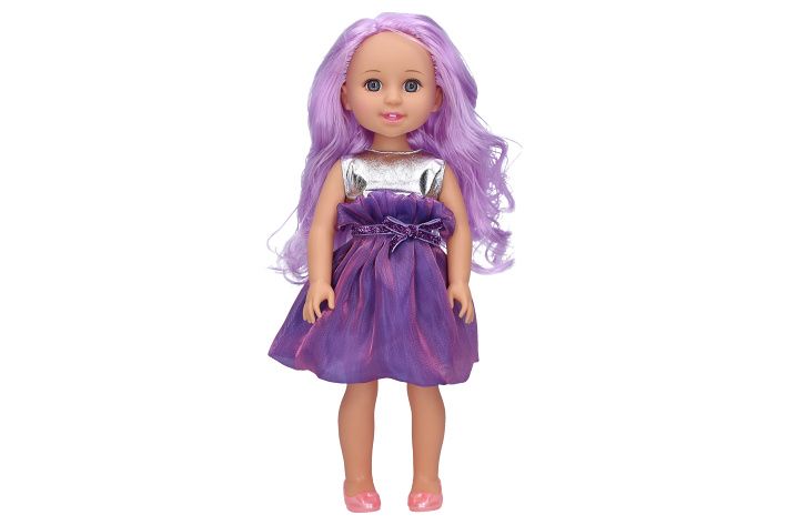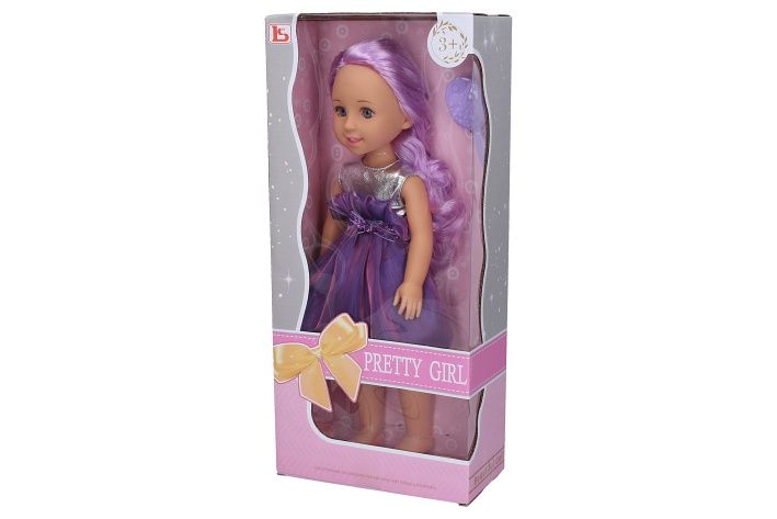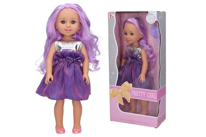Panenka fialová. Velikost 35 cm. Obsah balení - panenka a kartáč na vlasy.