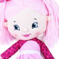 Rozkošná hadrová panenka s copánky je vysoká 50 cm. Panenka má růžové vlásky a krásné šatičky. Roztomilá panenka vhodná pro malé holčičky. Baleno v sáčku.