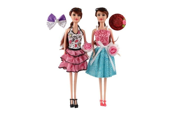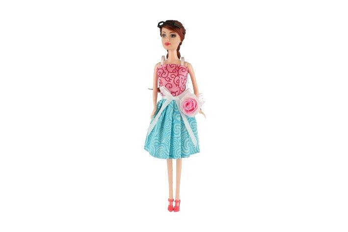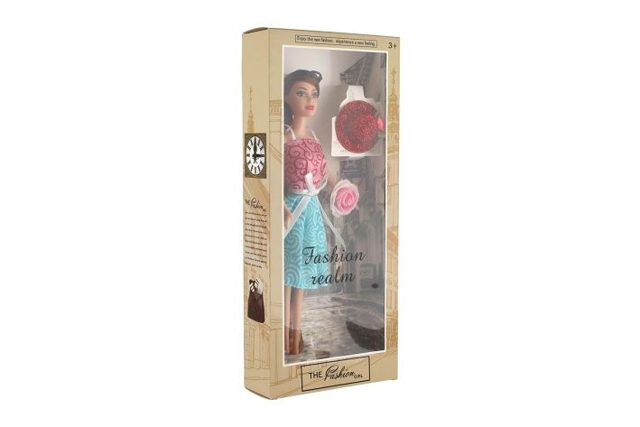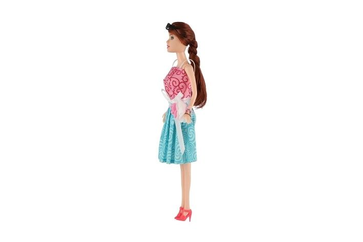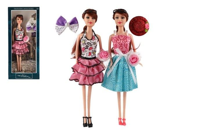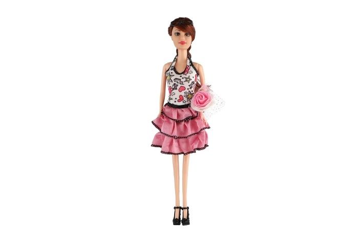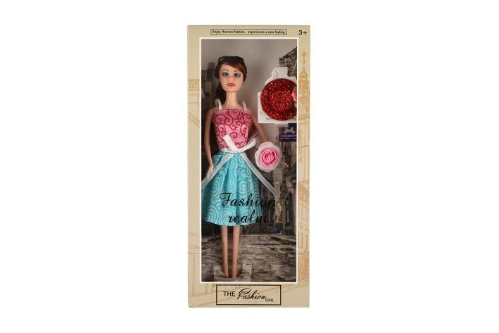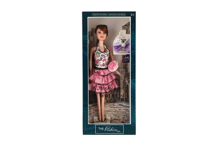 Krásná panenka s kloubovými končetinami. Panenka má stylové šaty a doplňky.