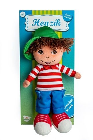Hadrový kluk Honzík po zmáčknutí bříška povídá: "Ahoj, já jsem Honzík a naučím tě básničky" a říká básničky: "Koulela se brambora..., Čistím zoubky..., Mám dvě ouška k naslouchání..." Rozměr: 30 cm Vhodný pro děti od 0 let Výrobek obsahuje nevyměnitelné baterie.