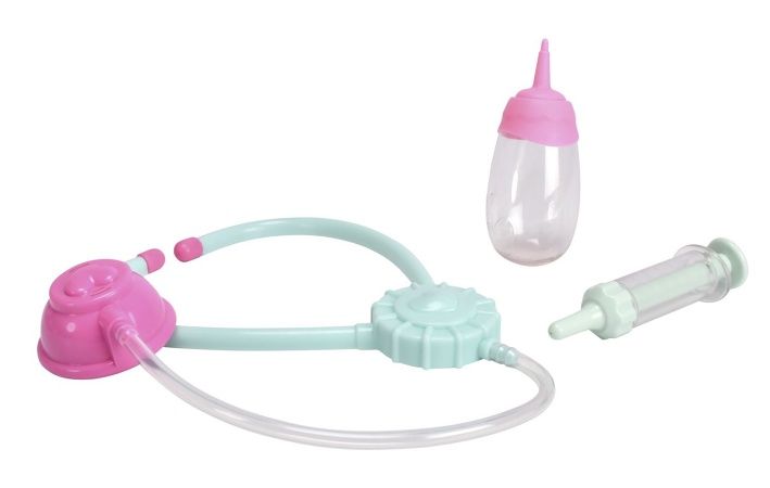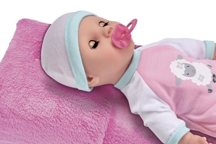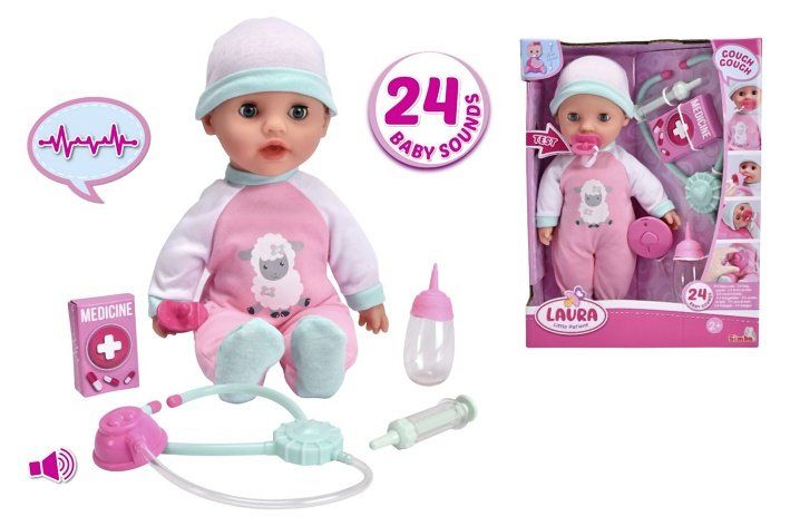 Panenka Laura s měkkým tělíčkem, několika funkcemi a s doktorským příslušenstvím. Výška panenky 30 cm.