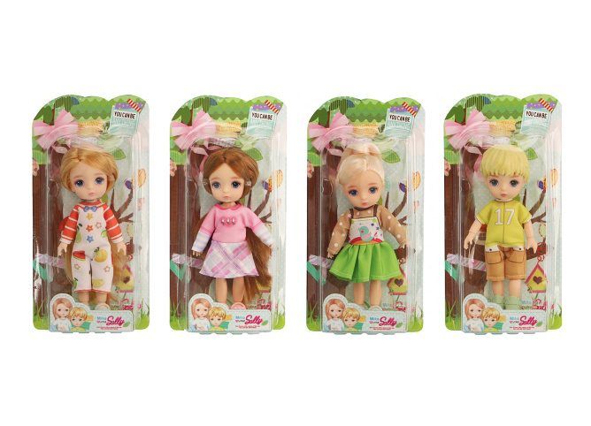Panenka letní šaty. Velikost 12,5 cm. Display box 12 ks. Pohyblivé klouby. 4 varianty - bílé, růžové, zelené, žluté.