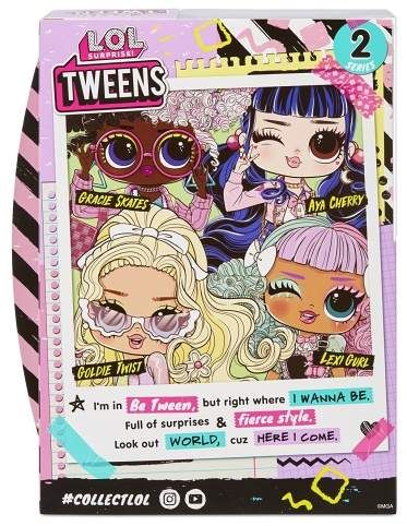 Rozbal úplně novou panenku z L.O.L. Surprise! rodinky. Tweens jsou větší ségry L.O.L. panenek a zároveň jsou to menší sestřičky OMG Velkých séger. Rozbal divokou Tweens panenku a 15 překvapení! Balení je možné použít jako pokojíček pro panenky. Obsah balení: • 1 ze 4 nových panenek s ohebnými klouby na nohou a rukou • 15 překvapení (náušnice, módní doplňky, kartáč na vlasy, kabelka a mnoho dalšího) • obal jako hrací sada – ložnice Velikost postavičky cca 16,5 cm.