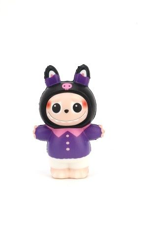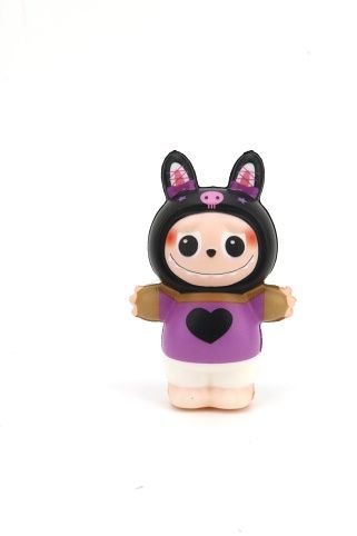 Panenka mačkací o velikosti 12 cm je navržena jako měkká a pružná hračka, která je ideální pro mačkání a uvolnění stresu. Panenka má kulatý obličej s velkýma očima a výrazným úsměvem, což jí dodává přátelský a hravý výraz. Každá panenka je oblečena do stylizované kombinézy s kapucí, která má uši připomínající zvířecí motiv, například králičí uši. Kapuce je zdobena detaily jako jsou hvězdičky, lebka nebo mašličky, což přispívá k originálnímu vzhledu každé panenky. K dispozici je šest různých barevných variant. Mezi varianty patří kombinézy v odstínech fialové, modré, černé či světle modré, přičemž každá má unikátní vzory a doplňky, jako jsou srdíčka, proužky nebo knoflíky. Ruce panenky jsou rozpažené, což umožňuje snadné držení a manipulační hru. Nožky jsou krátké a mírně zaoblené, což spolu s celkovou měkkostí materiálu zajišťuje příjemný dotek. Panenka je vyrobena z měkkého, mačkacího materiálu, který se po stisknutí vrací do původního tvaru. Tento materiál je vhodný nejen jako hračka, ale také jako pomůcka pro relaxaci a snížení napětí. Panenky jsou baleny v síťce, která usnadňuje jejich vystavení v prodejně a zároveň chrání před nečistotami. Tento produkt je vhodný jako malý dárek nebo sběratelský předmět vhodný pro děti i dospělé, kteří mají rádi originální a zábavné doplňky.