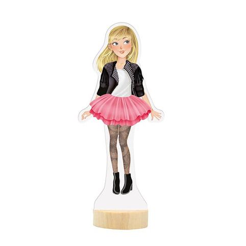 Balení obsahuje oblékací postavičku, 3 archy magnetických částí oblečení, bot a doplňků a dřevěný podstavec.