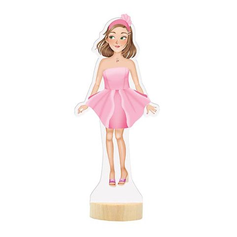 Balení obsahuje oblékací panenku, 30 magnetických částí (oblečení, boty, doplňky) a dřevěný podstavec, díky nimž lze vytvořit nespočet módních kreací.