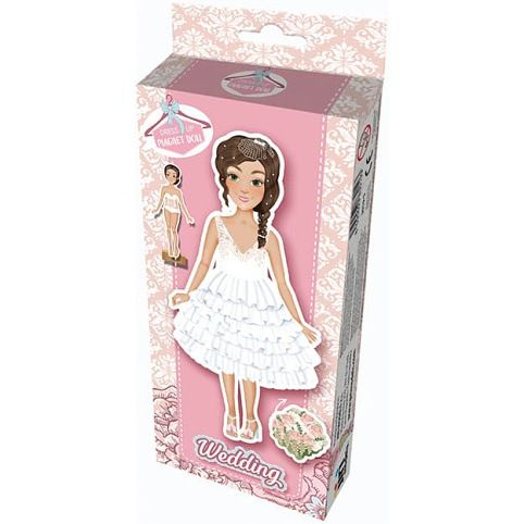 Balení obsahuje oblékací postavičku, 3 archy magnetických částí oblečení, bot a doplňků a dřevěný podstavec.