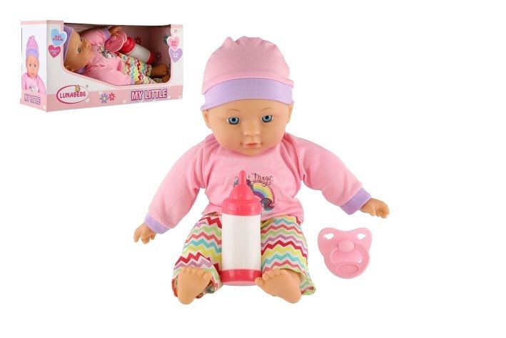 Panenka miminko 30cm měkké tělo s lahvičkou, dudlíkem v krabici 31x15,5x10cm