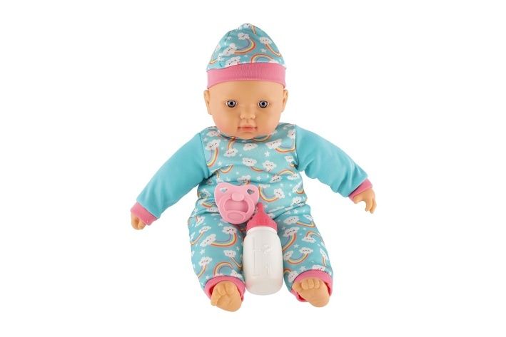 Roztomilá panenka s měkým tělíčkem v krásném oblečku s duhami. Toto miminko udělá jistě radost každé holčičce a stane se tak její nepostradatelnou součástí. Součástí balení je i lahvička a dudlík, které určitě každá maminka pro své miminko nutně potřebuje.