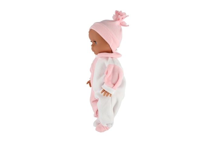 Panenka/Miminko Hamiro 40cm, pevné tělo overal bílorůžový + čepice růžová v krabici 20x43x