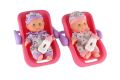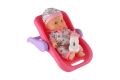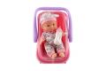 Panenka miminko plast 22cm pevné tělo v nosítku/autosedačce s lahvičkou 2 barvy v blistru