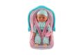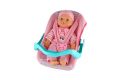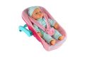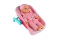 Panenka miminko plast/látka 30cm měkké tělo v nosítku/autosedačce s dudlíkem 2 barvy v bli