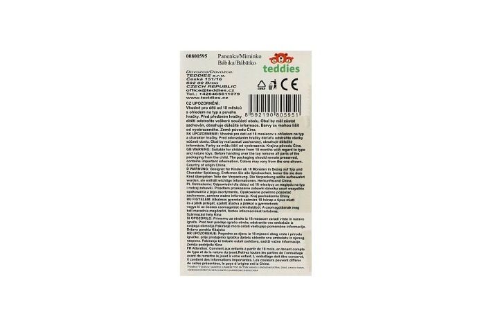 Roztomilé miminko o velikosti 30 cm je ideálním společníkem pro všechny malé pečovatele a pečovatelky. Panenka má měkké látkové tělíčko pro příjemné mazlení a realisticky zpracovanou plastovou hlavičku, ruce a nohy. Součástí balení je nosítko/autosedačka a dudlík, díky kterému si děti mohou hrát na krmení a uspávání. V nabídce jsou dvě barevné varianty. Hra s panenkou rozvíjí jemnou motoriku, empatii i schopnost péče o druhé.