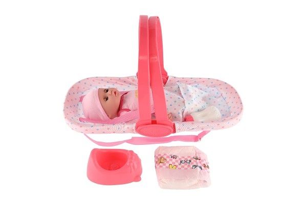 Panenka/miminko s nosítkem mrkací čurající plast 36cm pevné tělo s doplňky na bat. se zvuk